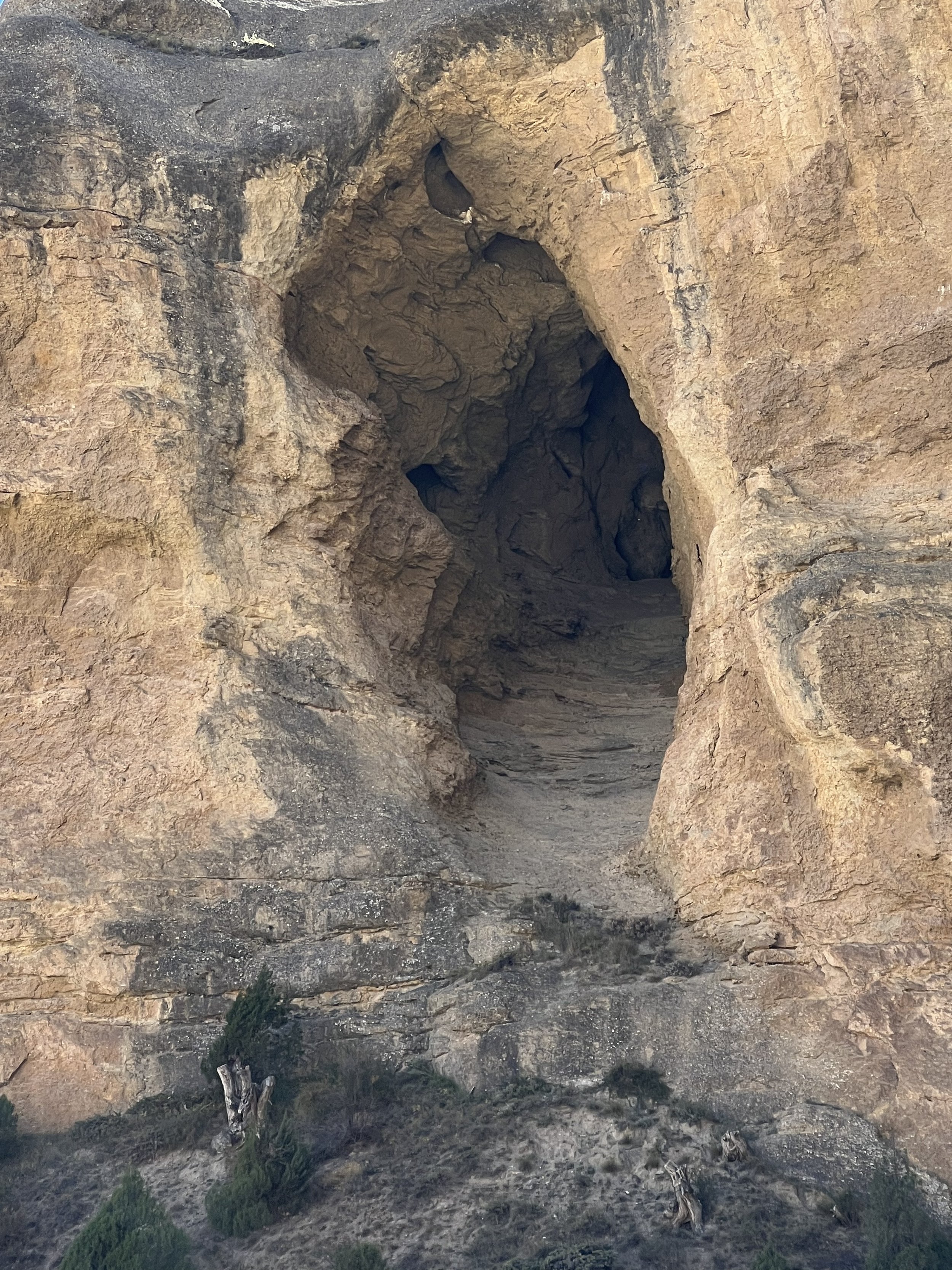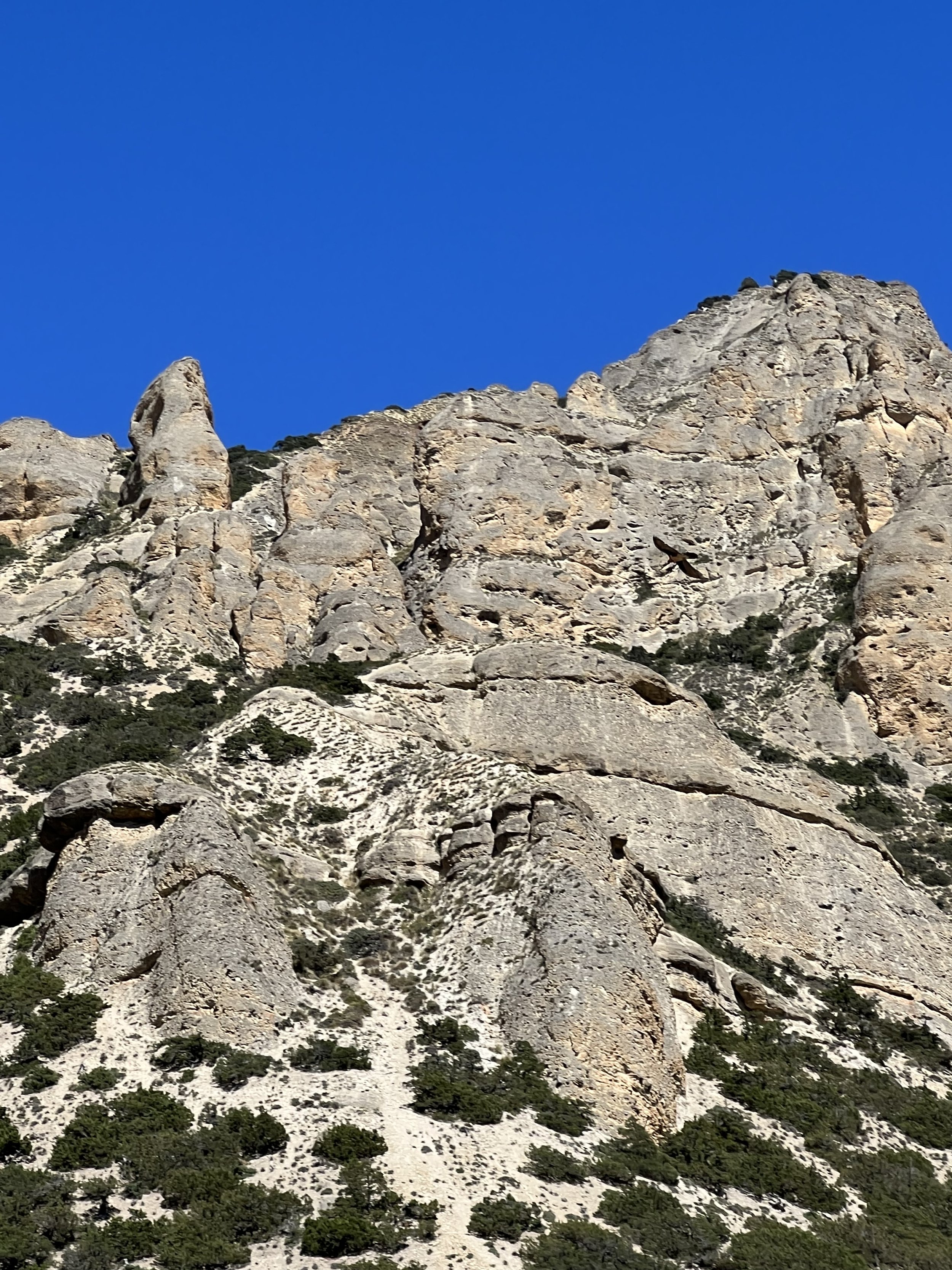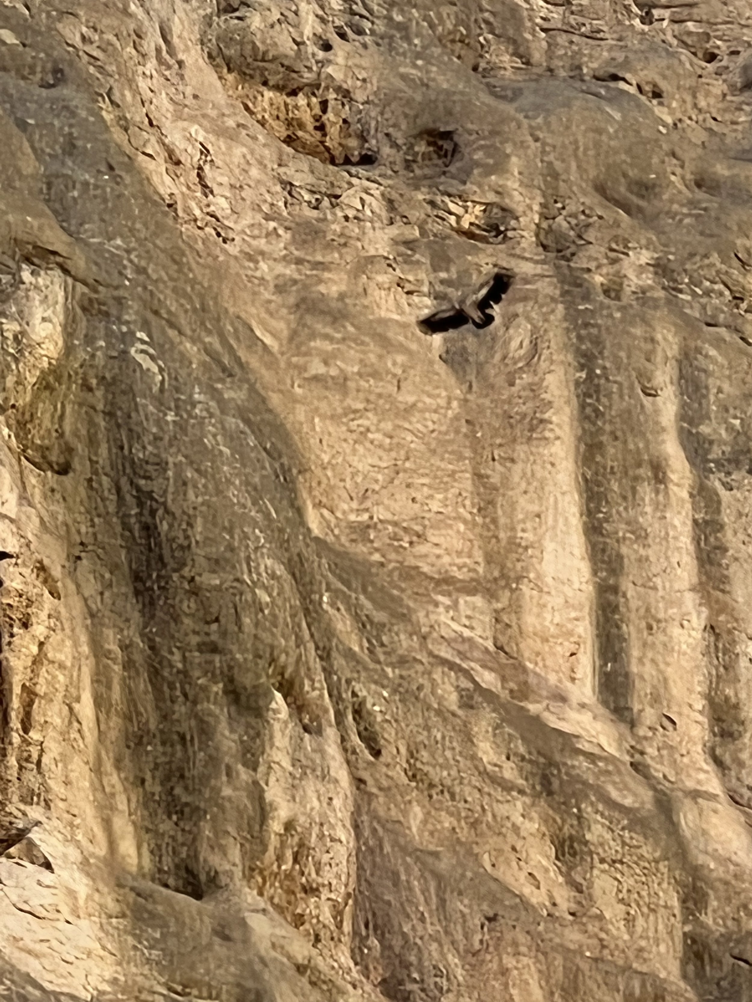 Eventually I wandered back down the stairs to find Ram and Man at the base, patiently waiting with apple and pomegranate to steel us for the long climb. Just as we were leaving, Ram pointed 60 feet up the cliff in front of us and said, is that a bird? The white one? I looked in absolute astonishment to see a small cave with a nest, a huge bird in the nest, and another on the ledge beside it. I grabbed binoculars to see a massive eagle, legs heavy with white feathers, standing tall in the nest, and another smaller one—a female? an adolescent?—standing nearby. A steppe eagle pair, nesting in view of the cave monastery. And really, where else?