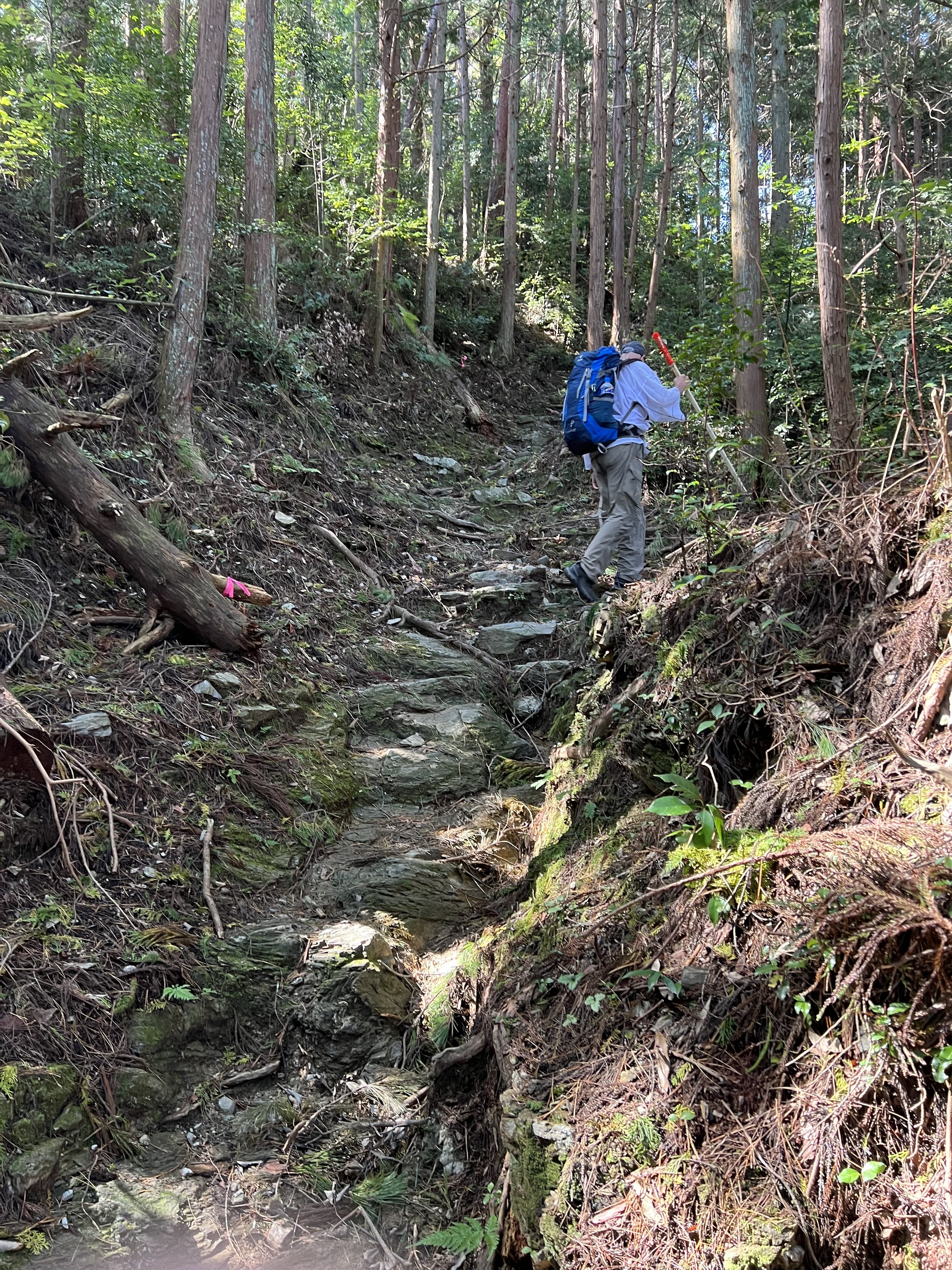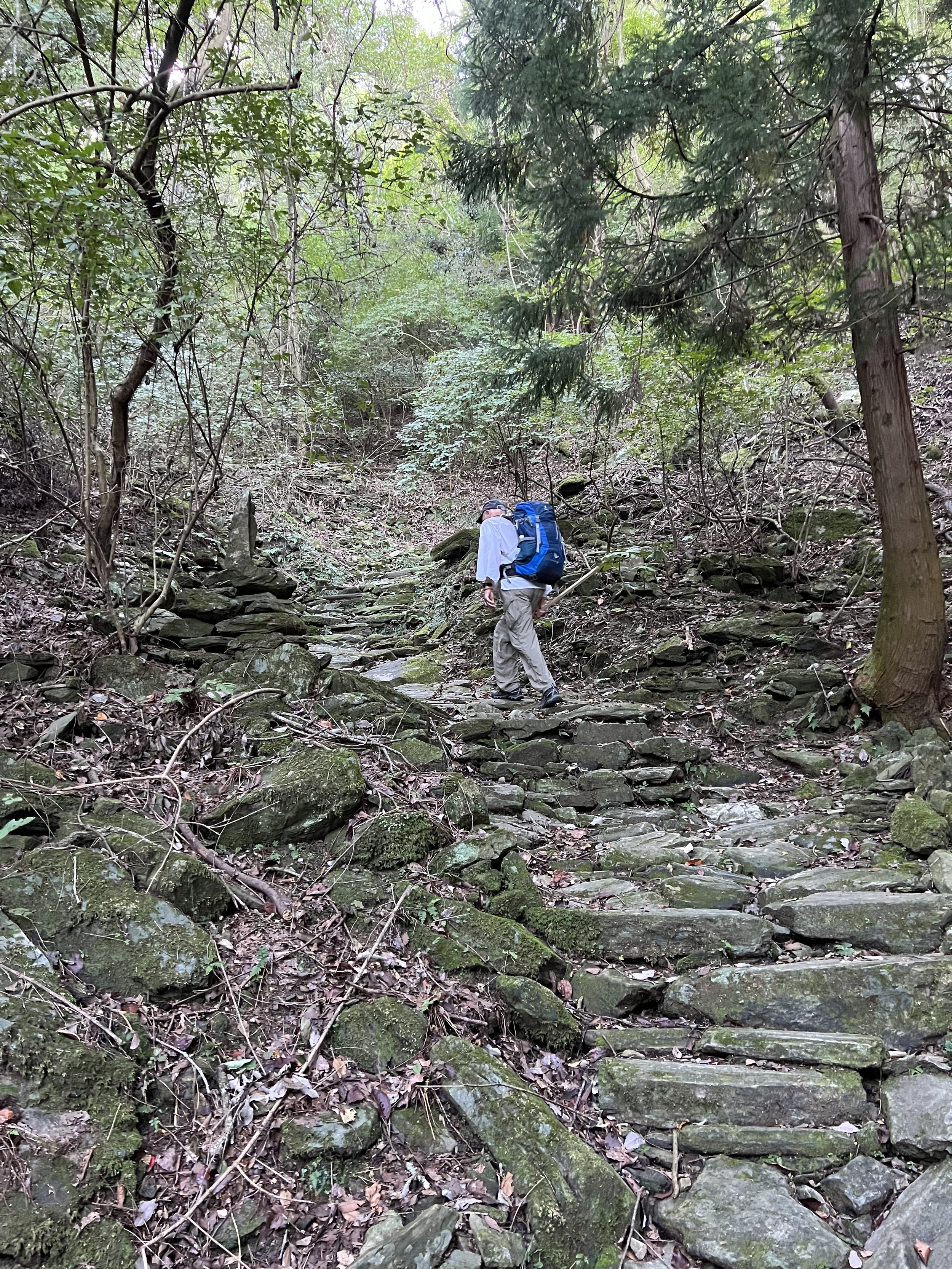 Shikoku Island is divided into four prefectures: Tokushima, Kochi, Ehime, and Kagawa. Over the course of the 45 days, we’ll walk clockwise through all four, more or less around the perimeter of the island, and each section of the walk is associated with a different kind of spiritual practice or discipline. We will be in Tokushima from temple 1 to temple 23, days 1 through 7 or 8, and the Tokushima section is associated with Hosshin, Awakening Bodhi Mind. I like to think—or hope—that Bodhi Mind is awakening in me here in some new way I don’t understand, and that it is doing so largely without significant input from me. My job is to put on boots each morning, carry my pack, complete the ceremonies at each temple, be kind to everyone I meet, and take care of my Henro garb, staff, and sacred objects. Anything beyond that, reaching for any particular kind of experience or meaning or even basic understanding, is superfluous. It’s a weight I don’t need to be carrying.