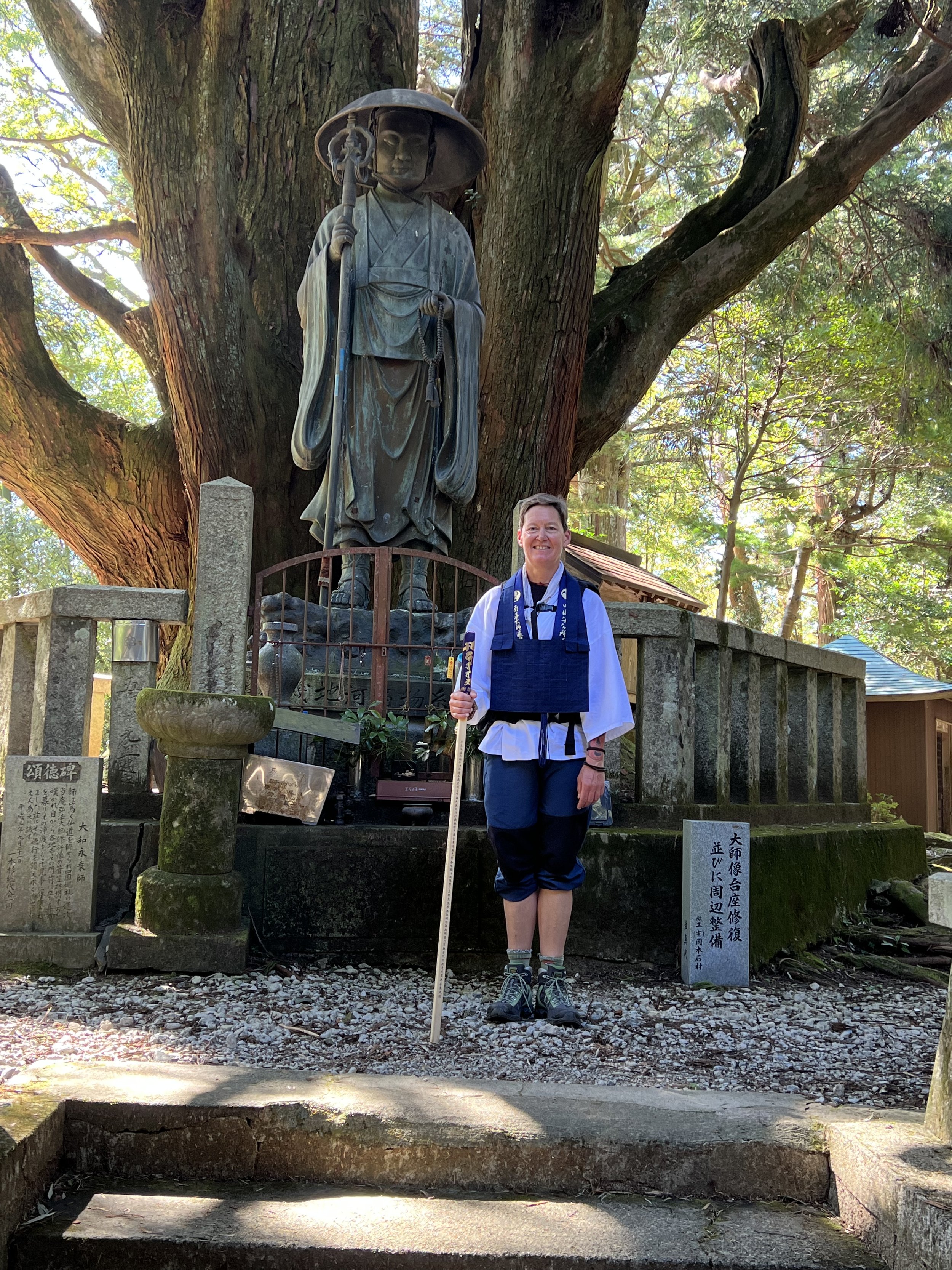 While walking for hours on the narrow edge of a ridiculously busy highway out of Tokushima city this morning, day 5 of this walk, and still frankly baffled by this entire experience to this point, I suddenly heard the word Tangaryo in my head. I understood immediately that this might be a helpful framing for my first days here. Maybe, I thought, it would be helpful to imagine that these first days are not unlike the experience of waiting at the gate to be admitted to monastic practice. Notwithstanding ten weeks of Himalayan trekking, my body aches in a thousand unfamiliar and only sometimes worrying ways from the long miles, wet heat, and endless flat pavement. Because I speak not a word of Japanese, and because my guide is a white man who speaks Japanese, I have rarely been addressed on the first five days of the walk. Inn owners and other Henros engage Dave, and I stand by wrapped in a kind of invisibility cloak, neither present nor absent. Now, I don’t necessarily mind an invisibility cloak—I had worried I would stand out too much in Japan, with my white skin, tattoos, height, and so on. But I’ve been amused to feel something close to ghost-like here, watching a world unfold all around me of which I am not quite a part and to which I do not quite belong, notwithstanding my Henro outfit, my walking staff, my careful observation of the ceremonies at each temple, and my equally careful observation of the forms for being a good guest at a minshuku or ryokan.