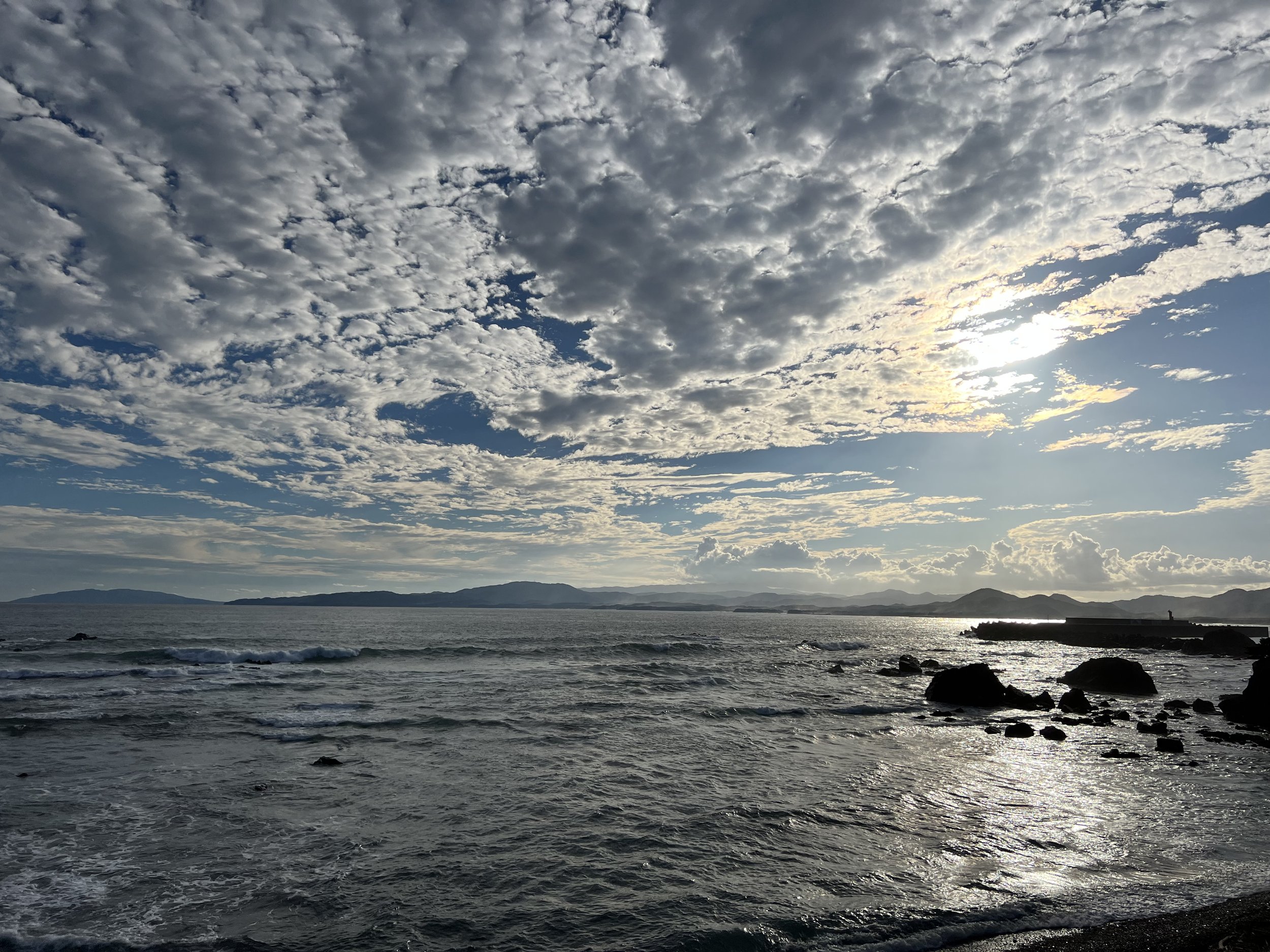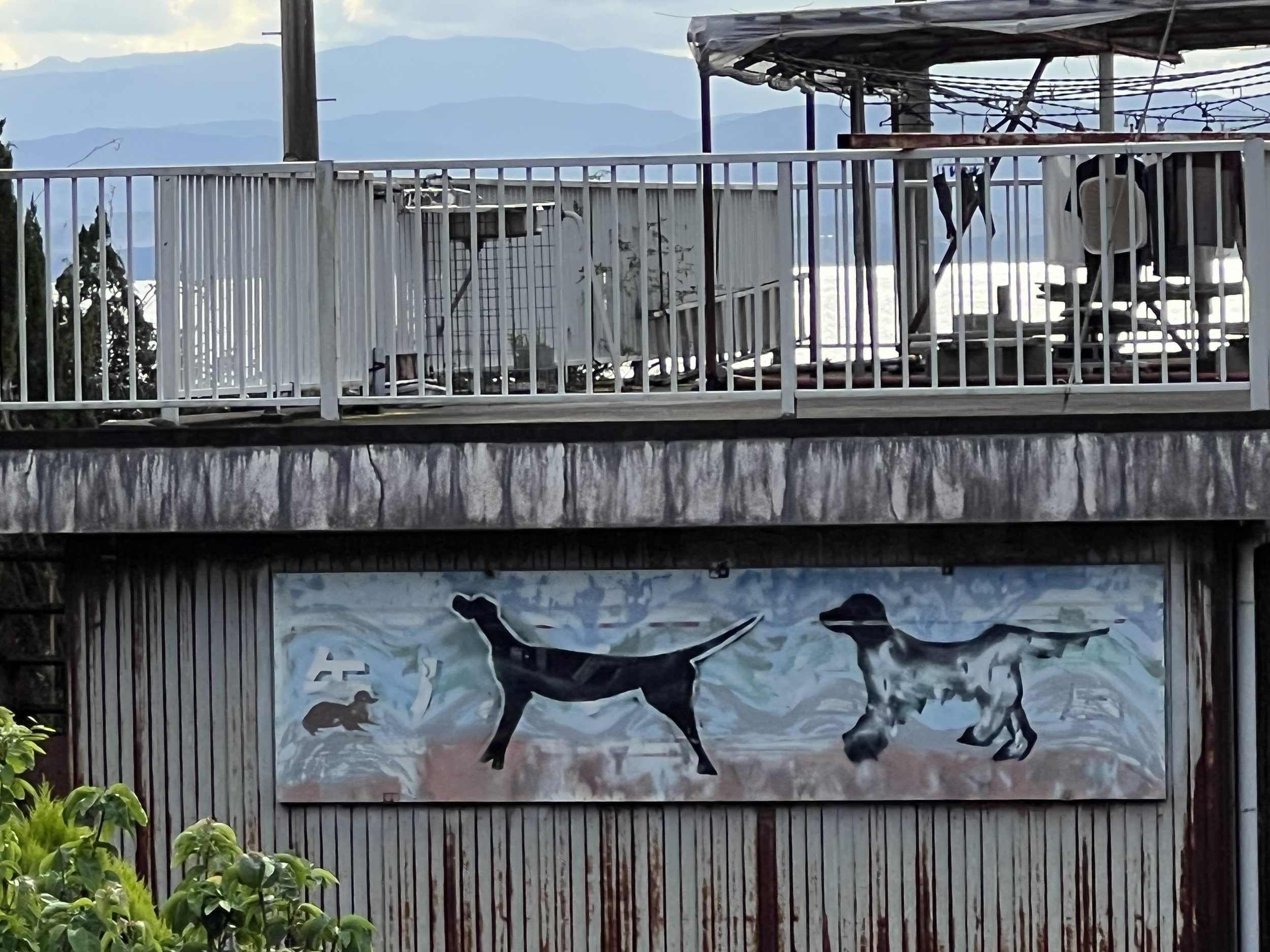 I also felt truly encouraged today by the fact that we popped back out on the water. We had lunch, as we often do, OK nearly always do, at a convenience store, and I laughed as I walked out the door to see a giant basket of the surf wax known as Mr. Zog’s Sex Wax that is ubiquitous in Santa Cruz and stashed all over my house. I’m kicking myself that I did not have the courage to stop and take a picture. We ended the day, for the second time on this trip, and once again after a long hot walk with no temples, in a little surf town. There was a Kōbō Daishi statue to meet us at the entrance to town and a rather wonderful mural of some happy dogs. And then there was another guesthouse, right on the water. Once again, I can hear the waves from my bedroom. Once again, I am encouraged by the great roar of mother ocean and reminders of home. I can see Cape Ashizuri through the mist, waiting. The name of this guesthouse is Umibōzu, ocean monk (although it’s also the name of a mischievous sea spirit-we’ll leave that aside for now). I’m feeling quite welcome and in the embrace of the familiar here.