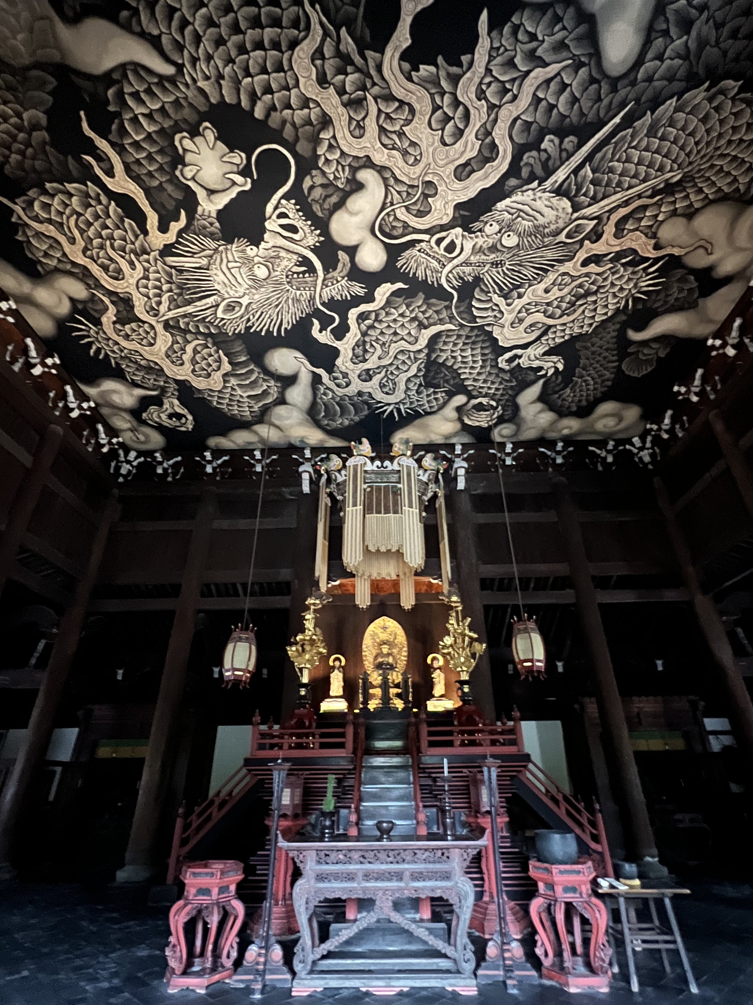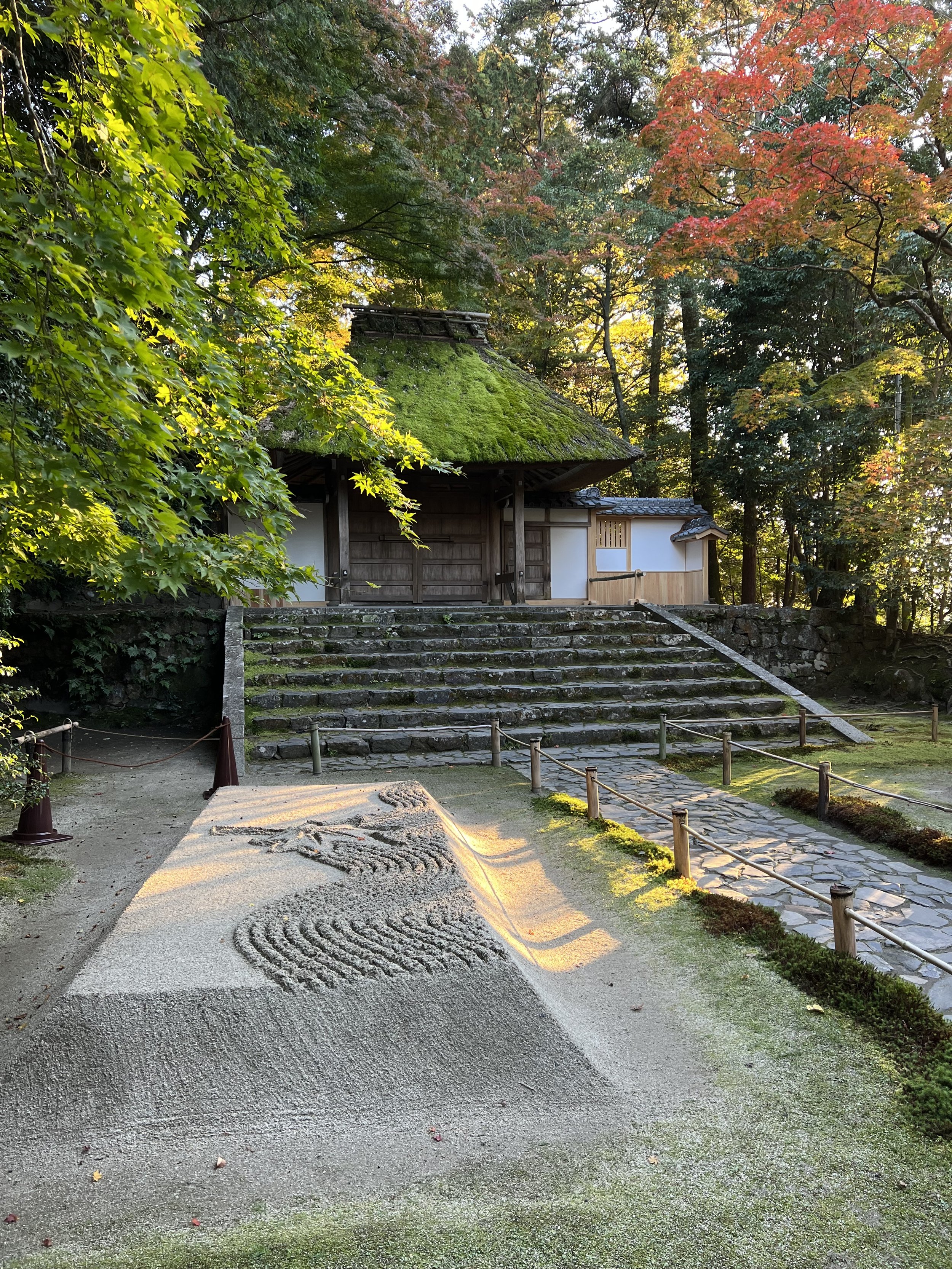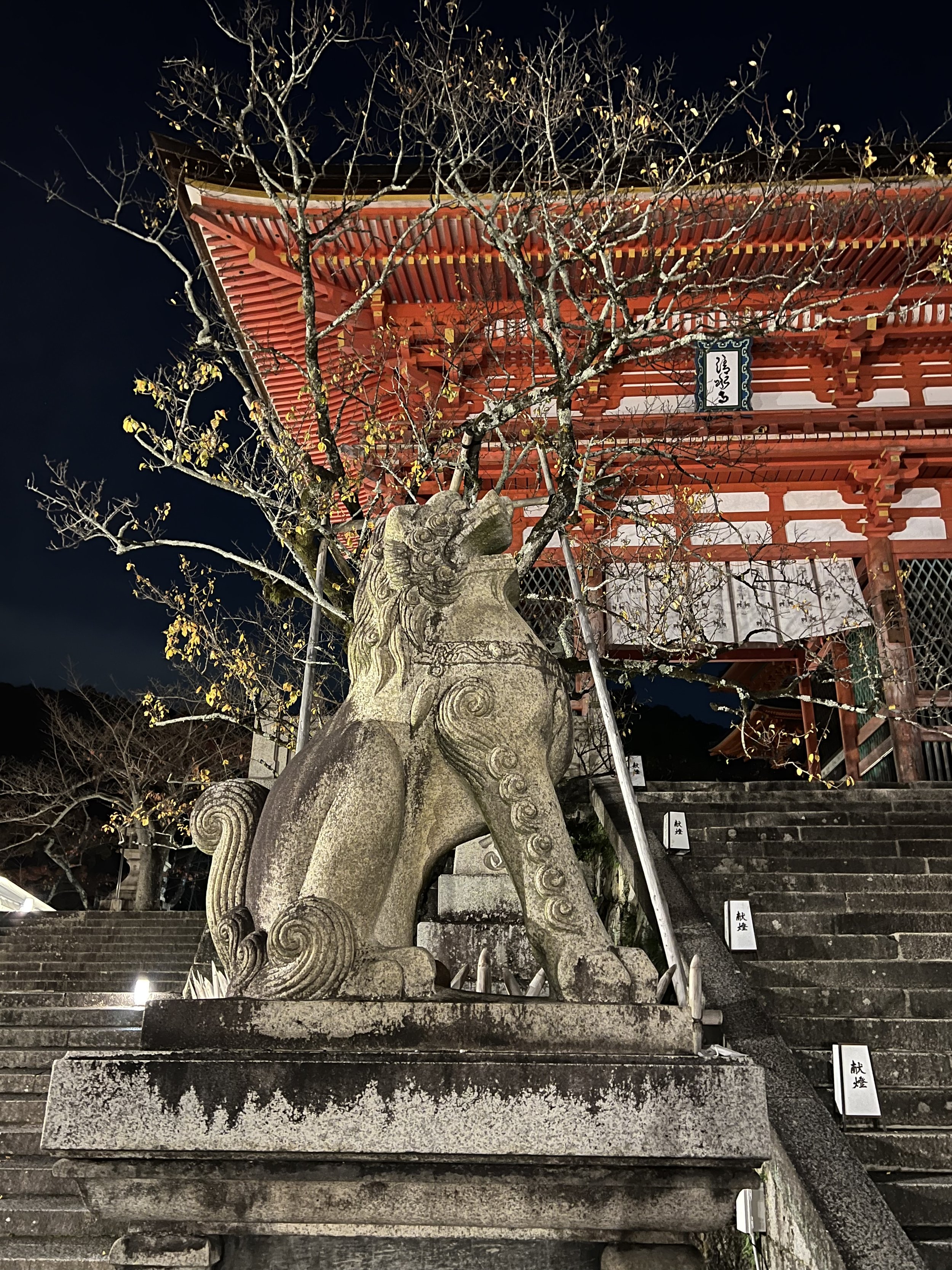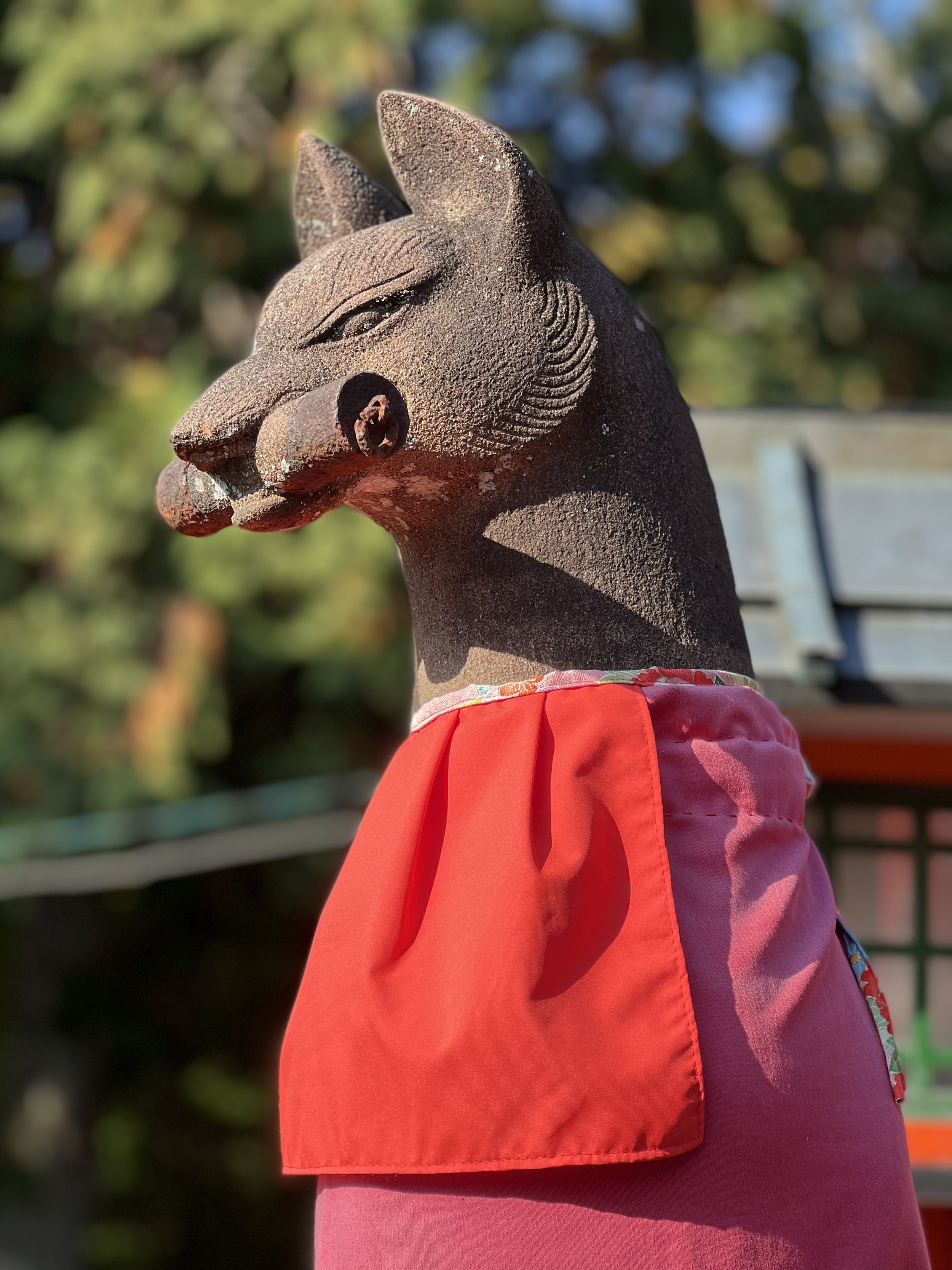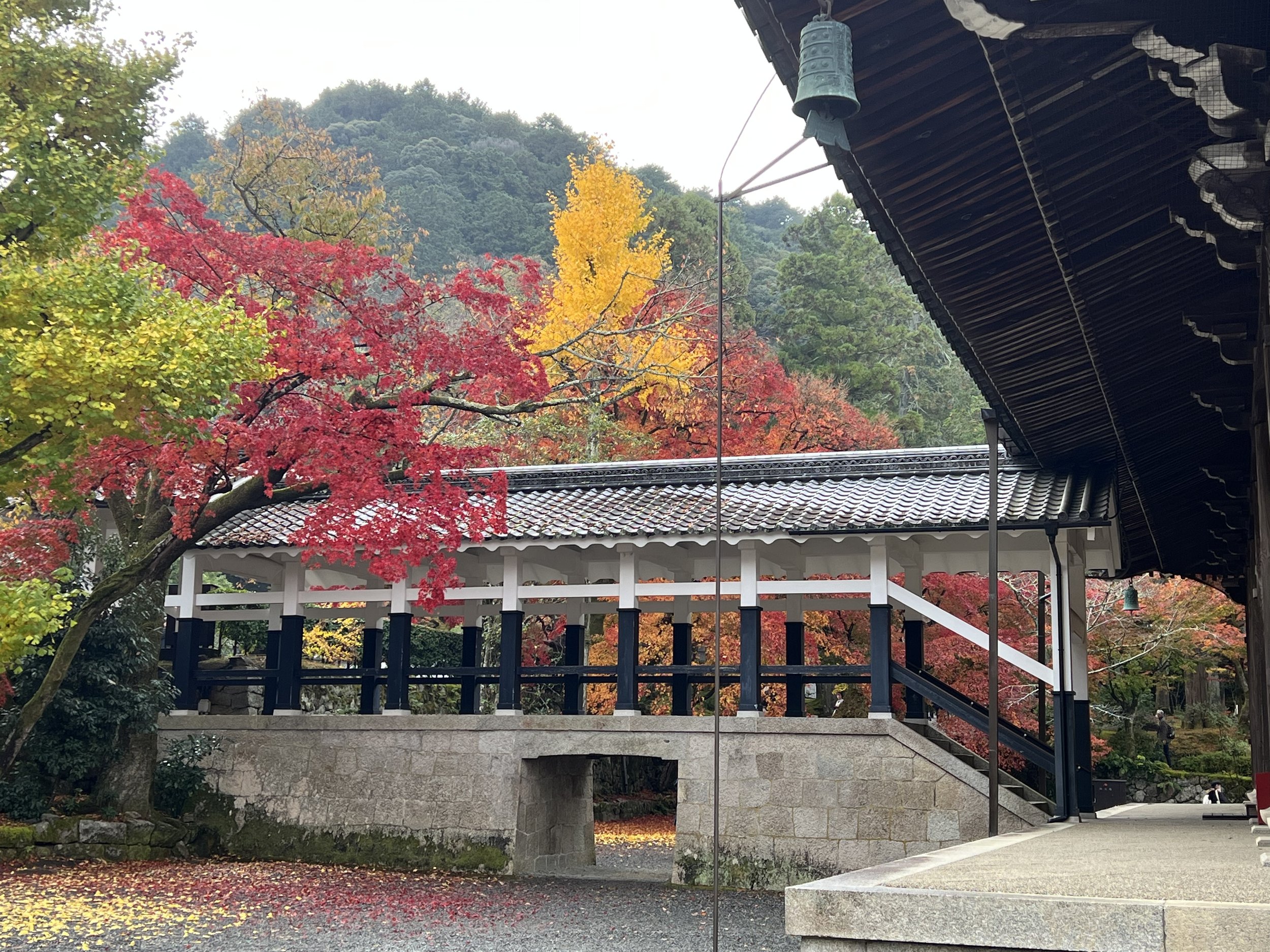 This post will be short on words and long on images. Three days in Kyoto have provided all the medicine my being needed to recover from the rigors of the past few weeks, restore my spirit to and through appreciation and wonder, and perfectly seal this remarkable journey of walking and praying in some of Buddhismโ€™s most beautiful and revered sites. Iโ€™ve visited historic temples, mountain monasteries, and shrines on fire with foliage and the light of millennia of practice. Iโ€™ve walked miles of city streets and forest trails, climbed moss-covered stone steps lined with gates and cedar trees, sat silently in rock gardens, and looked out over the city at sunset in awe. Iโ€™ve danced among dragons and been brought to tears by thousands upon thousands (upon thousands) of foxes. I even found a small temple with prayer wheels near the giant Kannon in the peace garden. Did the Kora three times spinning and prayingโ€”full circle to my time in Ladakh and Nepal. And just outside, a little ox, curled up just like Nandi outside a temple in Southern Indiaโ€”all the way back there to connect with an old friend.